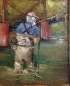Day 10 oil on canvas – plein air Fishing Blue Ridge Toccoa River – Bob from Minnesota