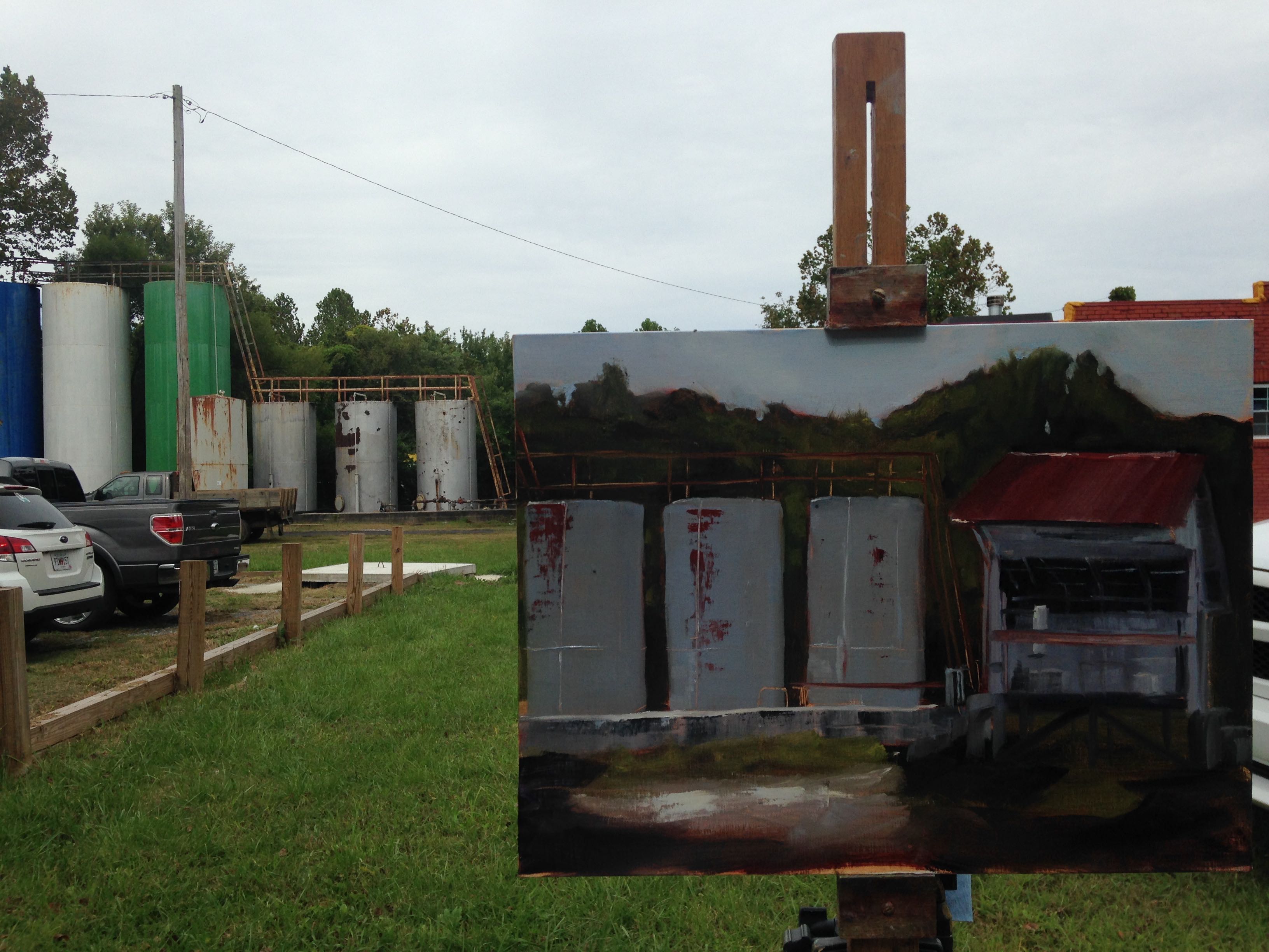 Day 11 oil on canvas – plein air Blue Ridge gas tanks