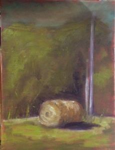 Day 27 Oil on Canvas – Plein air – Hay Bail on Hurt Bridge